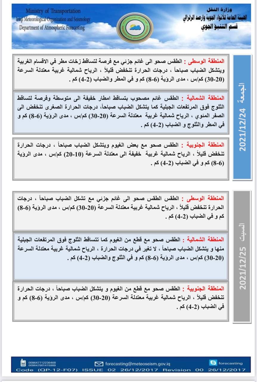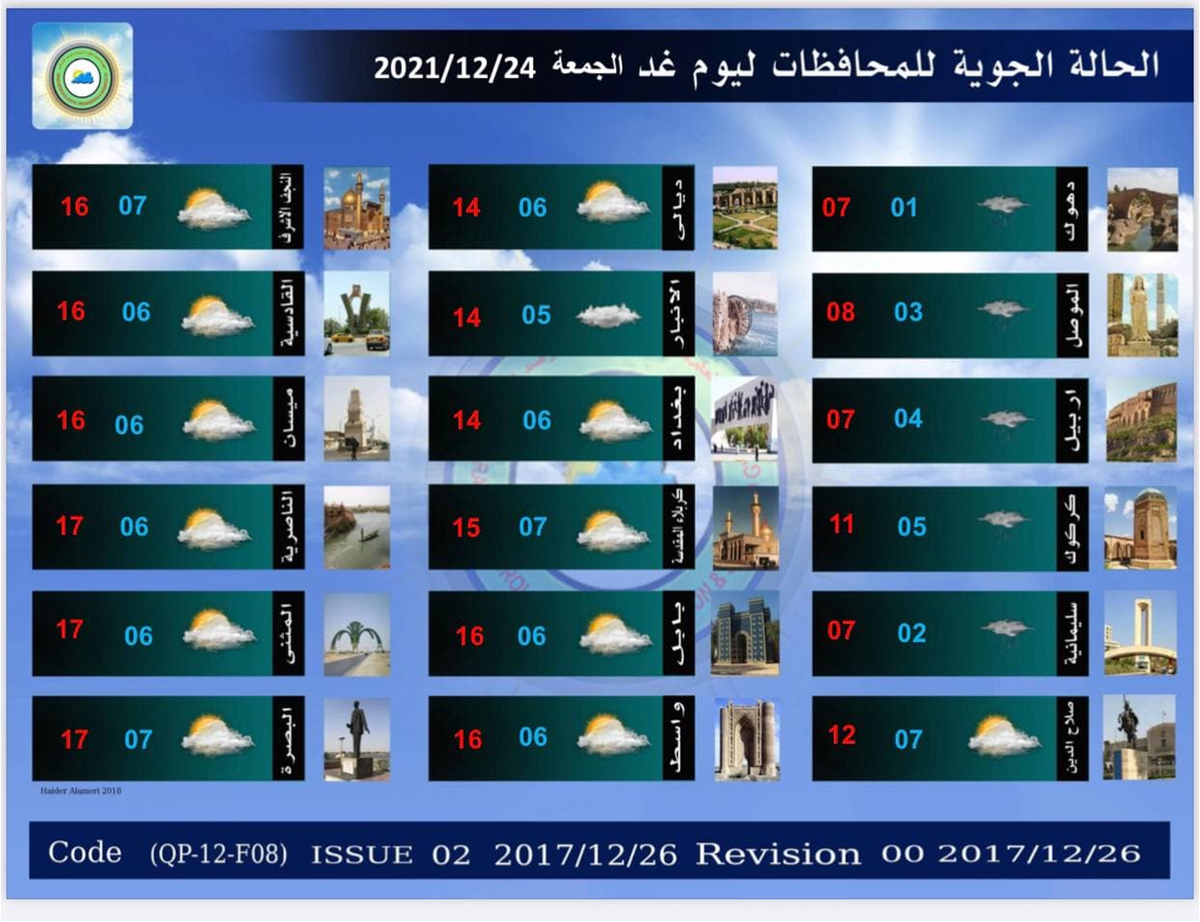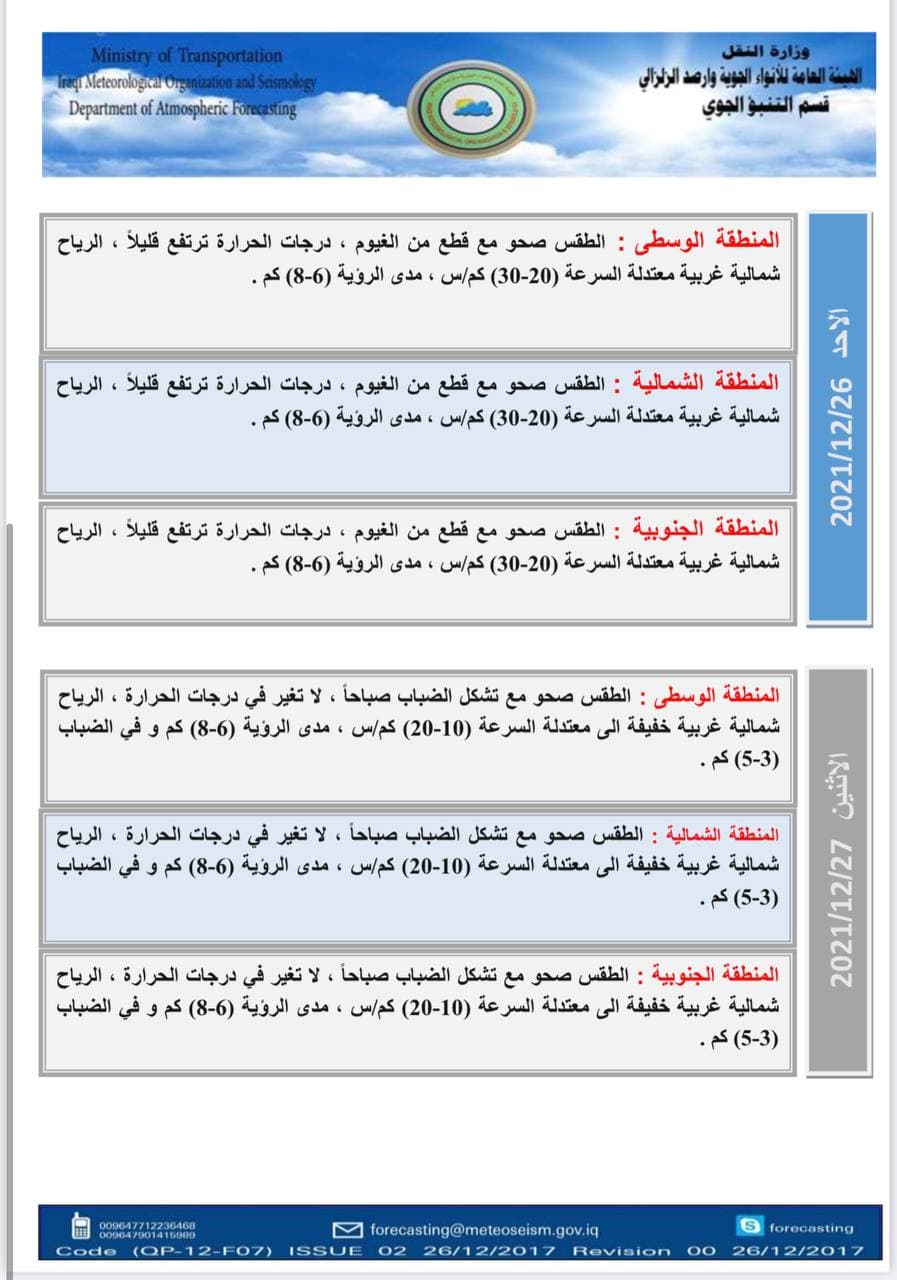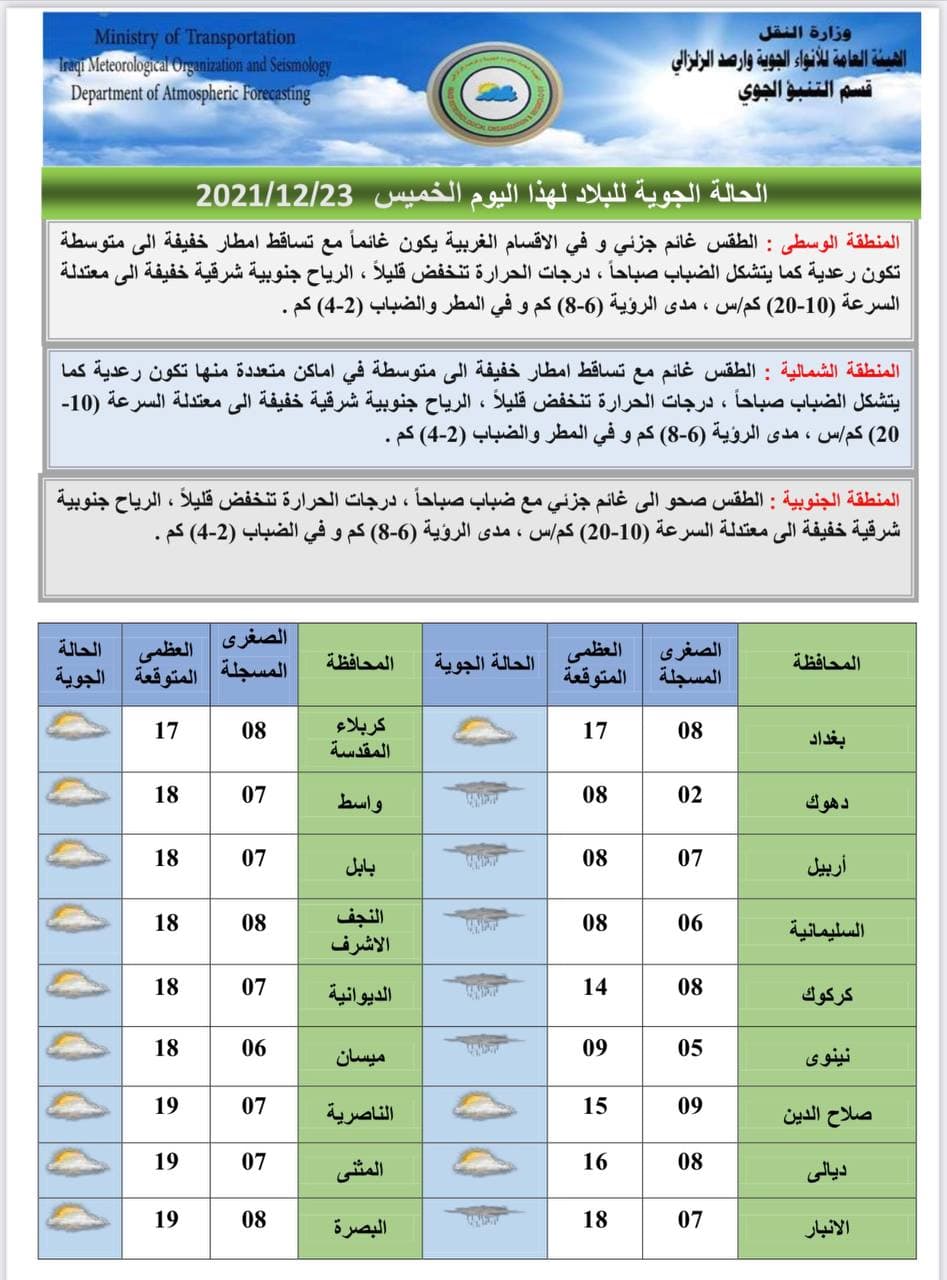 وذكرت الهيئة في بيان ورد لـ السومرية نيوز، إن "طقس اليوم سيكون غائم جزئي وفي الاقسام الغربية يكون غائما مع فرصة لتساقط أمطار رعدية".